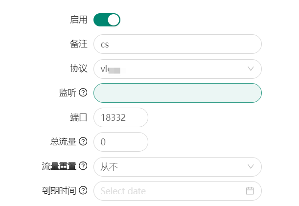 协议就是Vles,备注最好加一个,后期添加多线路容易区分,端口自定义。