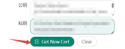 接着往下滑,在公钥和私钥这里,点击下方的绿色按钮来获取一组密钥。