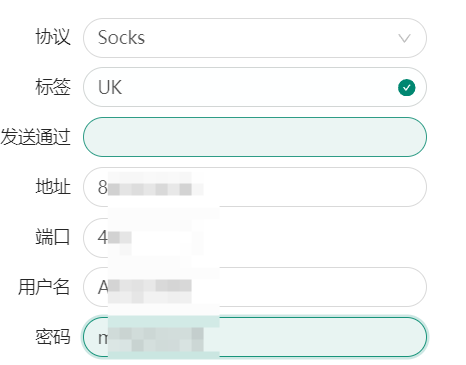 选择你住宅IP厂商给你的IP协议,我这里买的IP协议是SS5的,选择对应的协议,标签这里自定义,后期能区分出来即可,然后将地址、端口、用户名、密码都填写进去,剩下的不用管,然后点击添加出站。