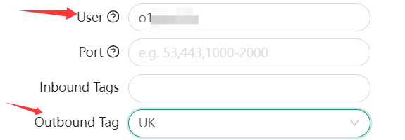 然后在“Xray设置”页面找到“路由规则”,添加一个规则,在“User”这里粘贴之前让你复制的电子邮件中的文本,然后在Outbound Tag这里,也就是选择出站标签,选择刚刚创建的,剩下的不用填写,直接点击添加规则。