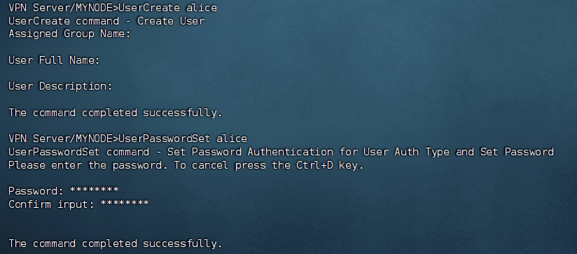 进入 SoftEther 的命令行管理工具并在 Server 管理模式下配置: