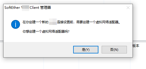 点击“添加新的连接”,第一次安装会弹出一个框,需要创建一个虚拟网络适配器,点击“是”就行,自动会安装好,之后会让你输入一个名称,自定义即可,不要用中文。