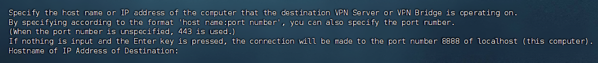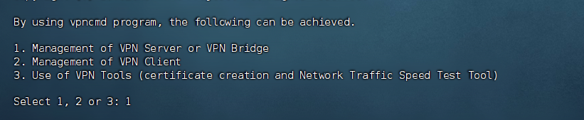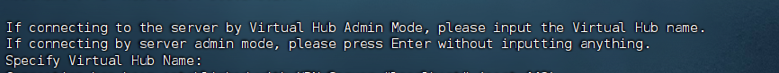 Specify Virtual Hub Name: 这里也是直接回车,表示用服务器管理员模式,可以管理整个Server,包括创建/删除 Virtual Hub。